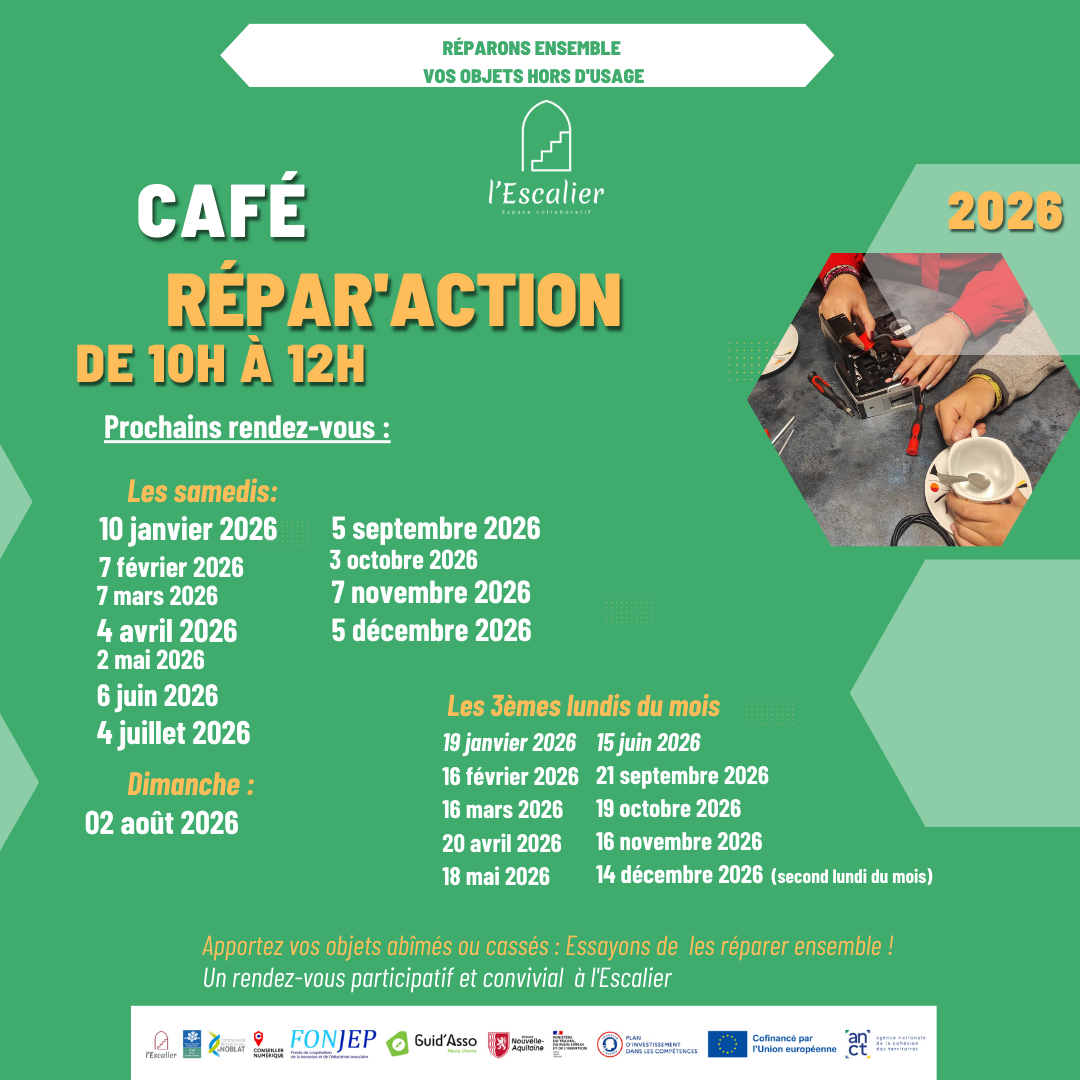 L’Escalier est un lieu associatif qui propose des espaces de travail partagés, des salles de réunions modulables, un espace de promotion culturelle et artistique, un café associatif, des activités et ateliers divers. Venez découvrir ce lieu ouvert, convivial et collaboratif !