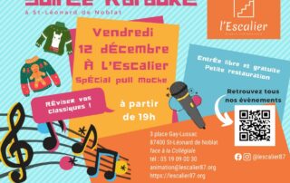 Dernier karaoké de l’année : spécial Pull moche de Noël ! Vendredi 12 décembre à 19h – à L’Escalier Pour clôturer l’année en beauté (ou en laine qui gratte ), on vous donne rendez-vous pour [...]