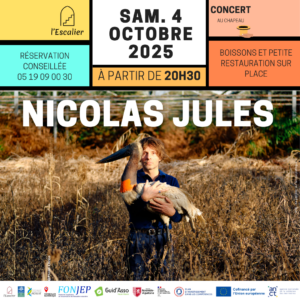 Poète, musicien et raconteur d’histoires, Nicolas Jules est un auteur-compositeur-interprète français à l’univers unique. Sur scène, il vous entraîne dans un voyage à mi-chemin entre chanson et poésie brute, où les mots dansent entre humour et émotion.